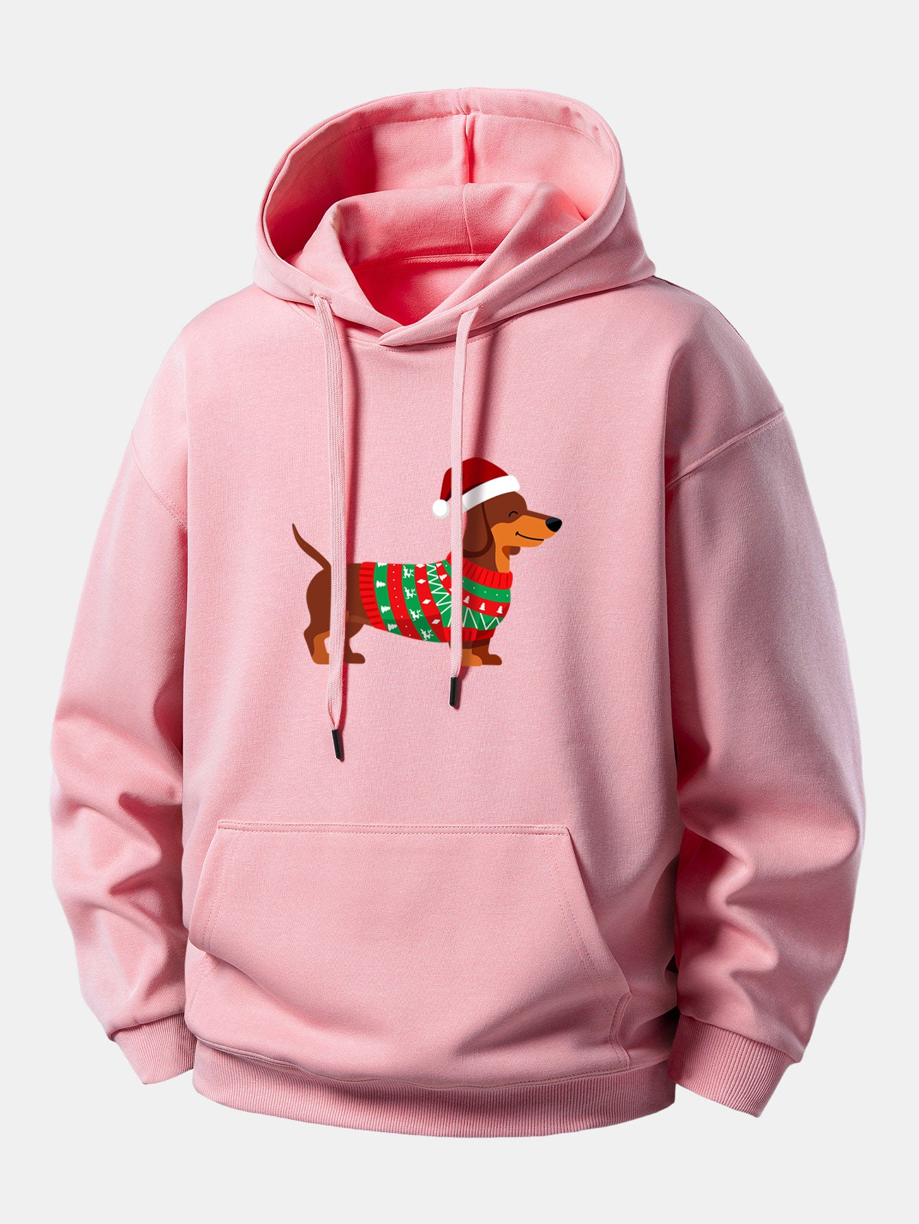Featuring a charming dachshund in a holiday-themed design, this hoodie combines playful graphics with cozy comfort. Its relaxed fit ensures ease of movement, while the adjustable drawstring hood provides a snug, customizable fit.